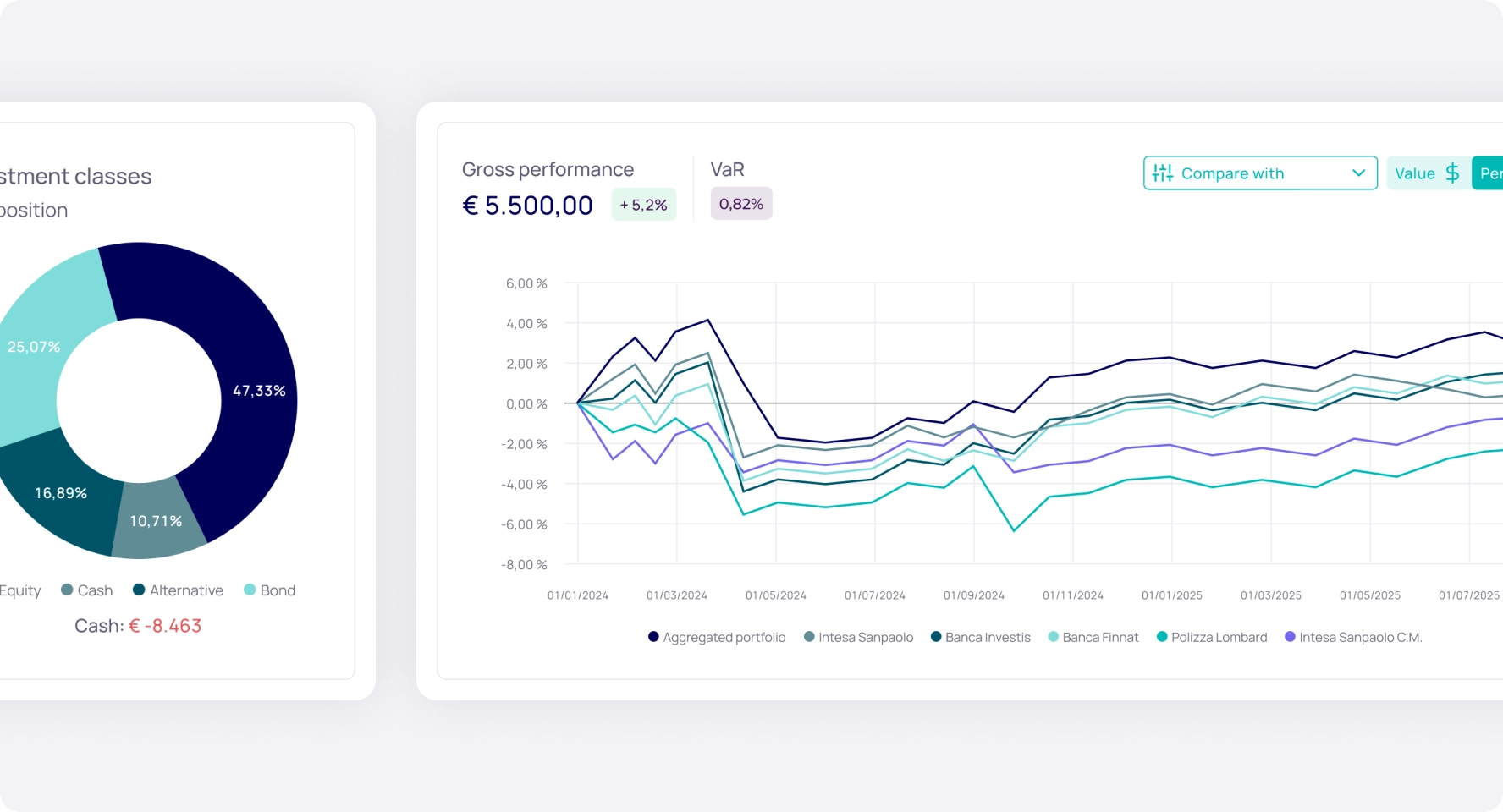 Configure exactly what your client can see: aggregated data, trends, charts, and asset categories. Everything is ready to view or export.