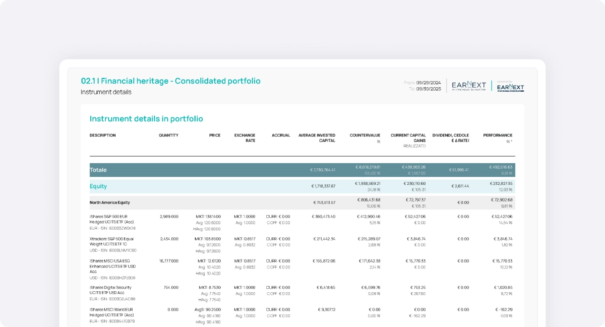 With Earnext, you can generate clear, professional, and fully customized wealth reports. Analyze data, monitor changes, and support your strategic decisions with reliable, up-to-date indicators.
