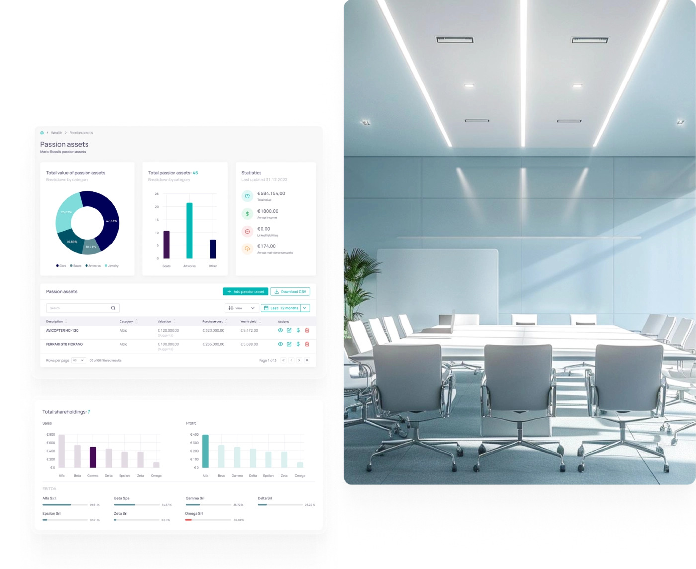 Gestisci strutture patrimoniali complesse con viste consolidate per soggetto, famiglia o asset class, anche in più giurisdizioni.