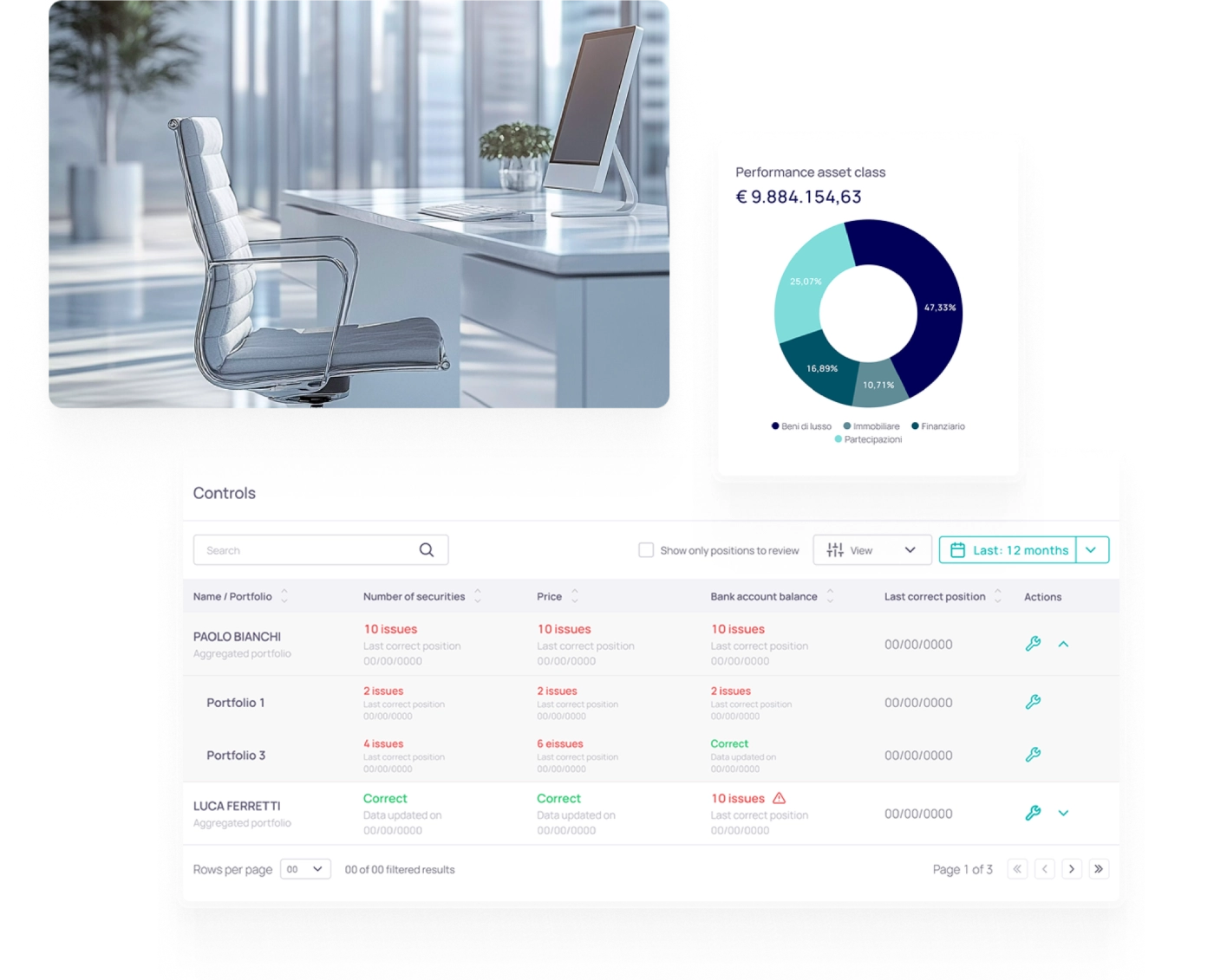La gestione fiduciaria richiede rigore, trasparenza e tracciabilità. Earnext semplifica la supervisione degli asset con dashboard configurabili, viste dedicate per i beneficiari e sistemi automatici di raccolta e aggiornamento dati.